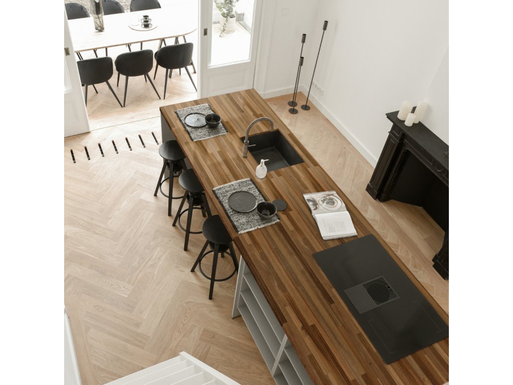 - Barva: světlá či karamelová, vertikální či horizontální vzor lepení.